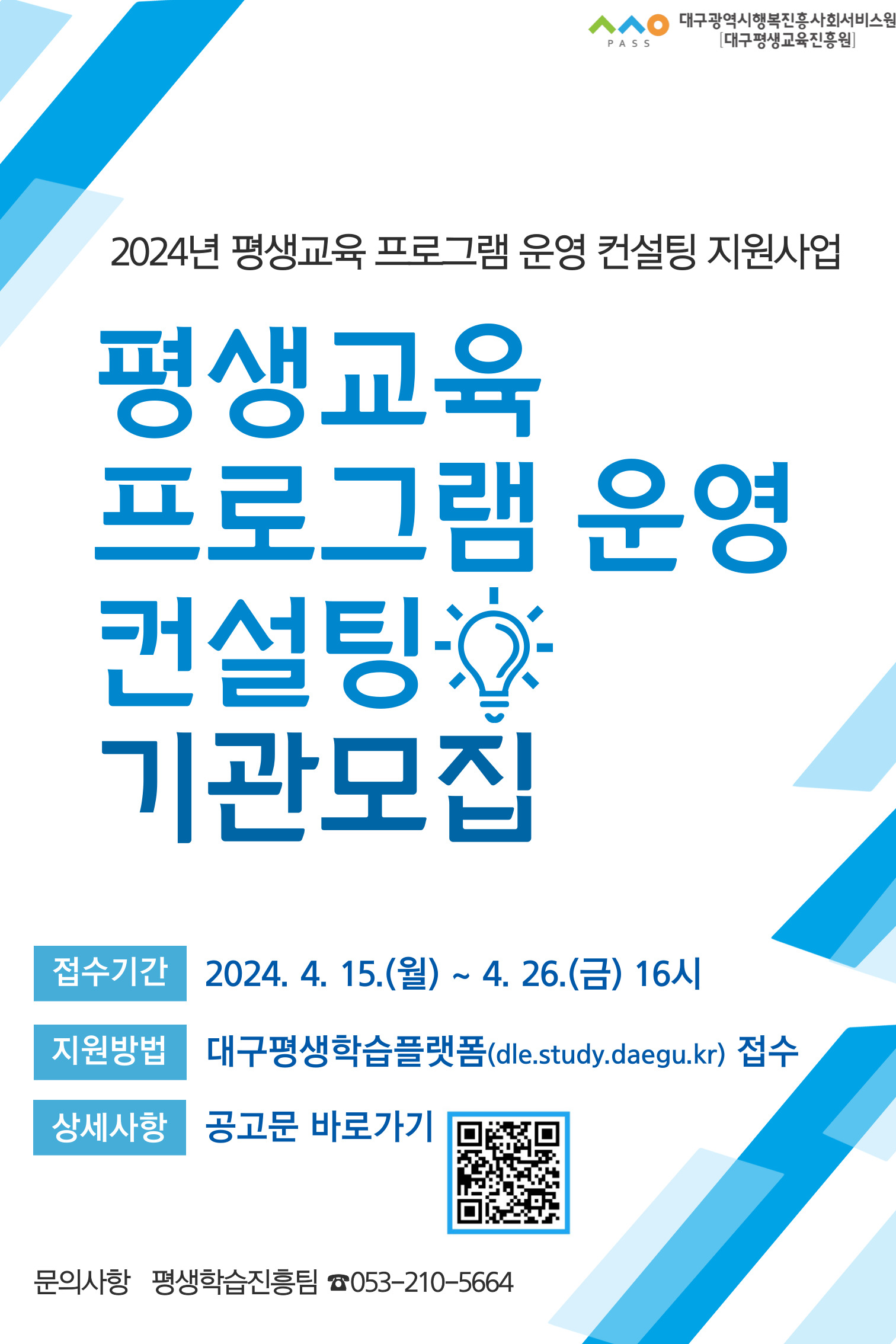 대구시 행복진흥사회서비스원은 평생교육 프로그램을 운영하는 기관을 대상으로 상담 지원 사업을 펼칩니다.