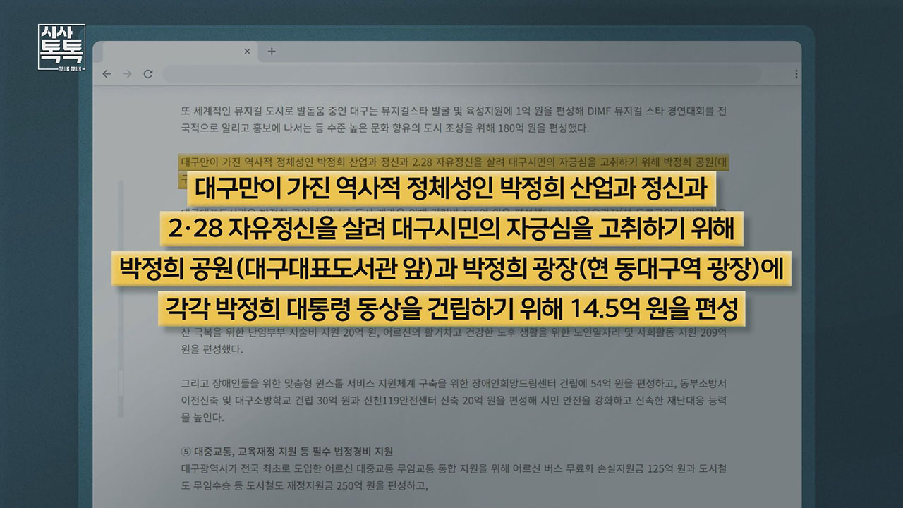 대구시가 박정희 기념 사업 밀어붙이는 이유는?