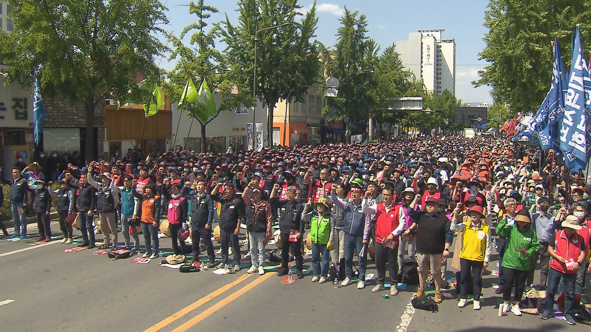 노동절 대구대회에는 5천여 명 참석해 물가 폭등과 서민경제 파단에도 국정 기조에 변화를 보이지 않는 윤석열 정권 퇴진 등을 요구할 예정입니다.