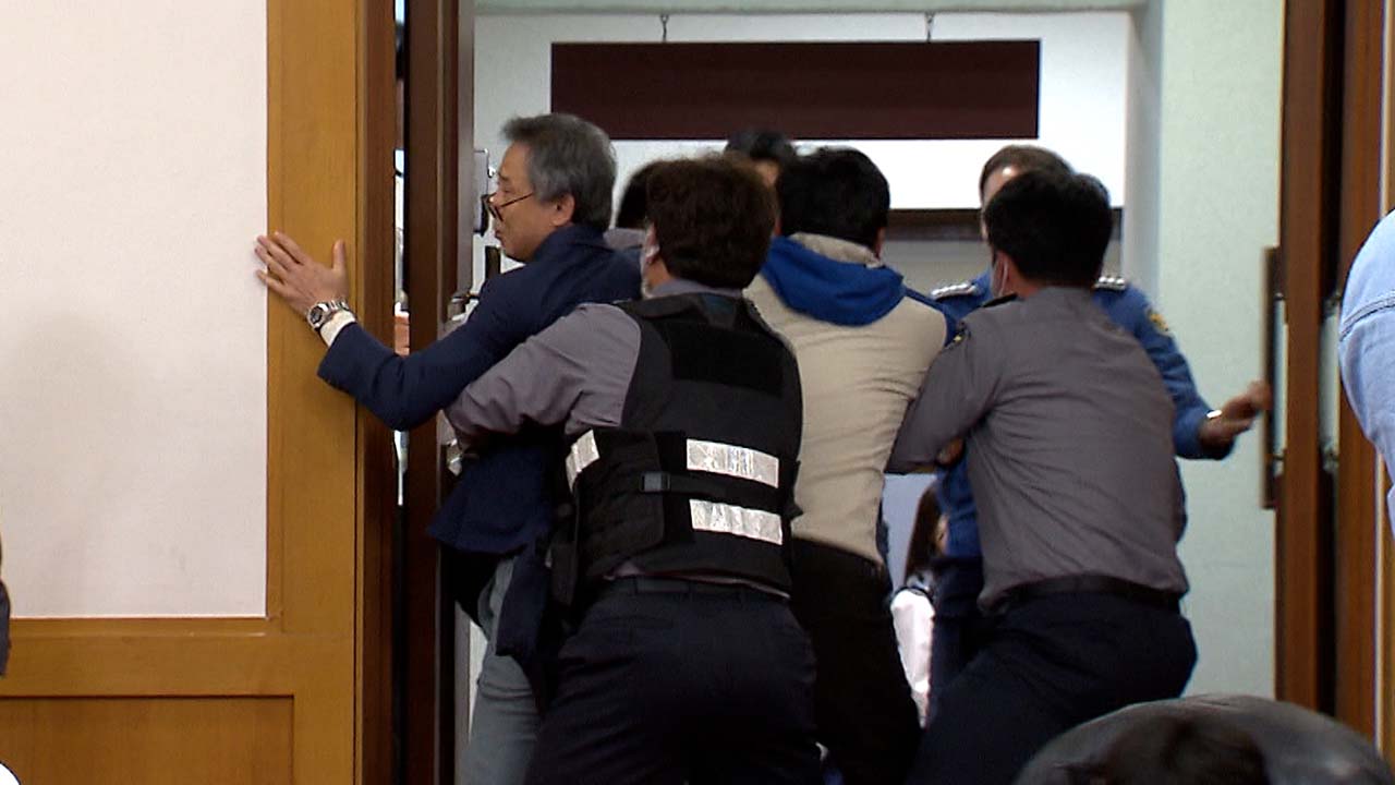 시민단체들의 반대와 반발은 조례 통과를 앞두고서도 이어져 왔습니다. 조례가 통과되는 날인 2일 오전에 대구시의회 앞에 모인 시민단체들은 대구시의회가 부결시켜야 한다며 촉구했습니다. 100여 명의 시민들은 대구시의회를 둘러싸고 현수막과 손팻말을 들고 박정희 동상 반대와 지원 조례 반대를 외쳤습니다. 본회의가 시작되자 일부는 방청석에서 지켜봤는데 조례안을 통과시키려 하자 의원석으로 뛰어들기도 하고 고함을 지르며 조례안 통과를 저지하려 했습니다.