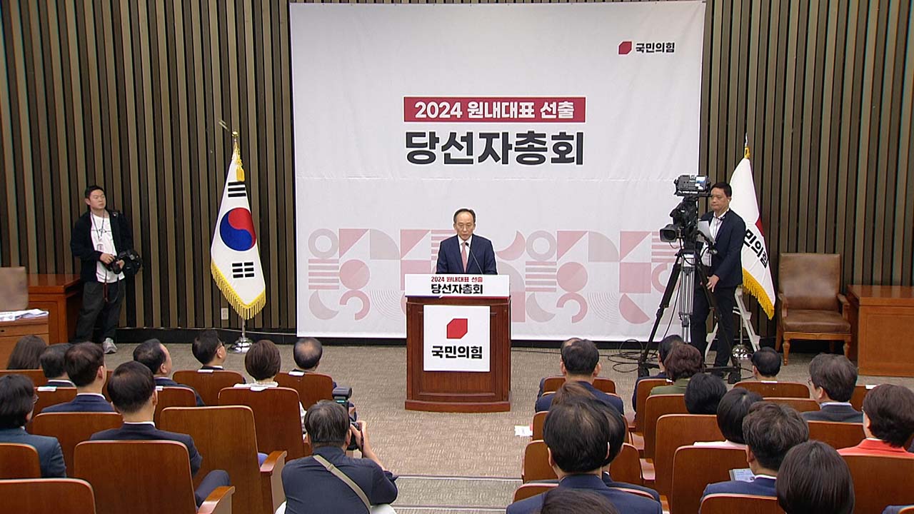 추 원내대표는 당선 소감에서 "유능한 민생 정책, 정책 정당이 돼야 한다”면서 "단일 대오로 108명이 똘똘 뭉치면 192석을 당당히 맞설 수 있다"고 밝혔습니다.