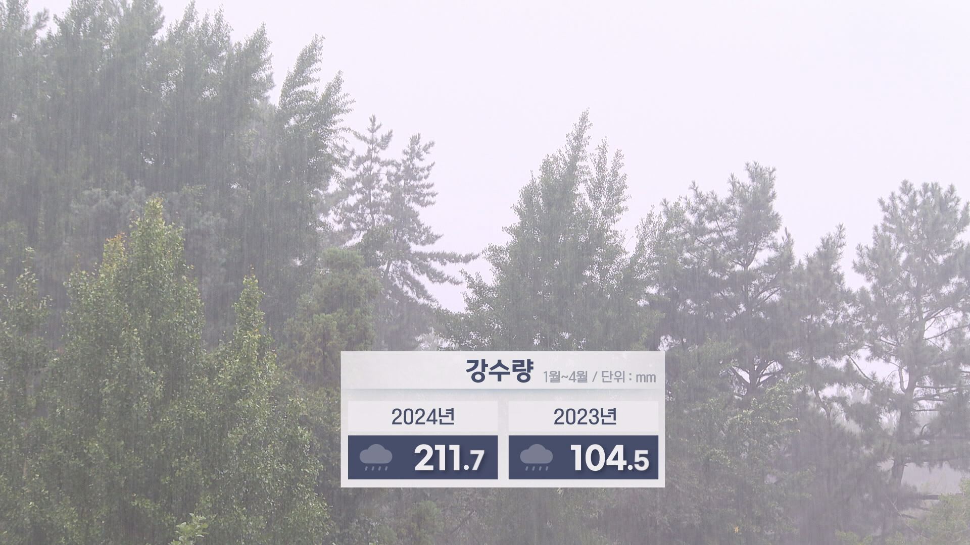 3월에는 9일, 4월에도 8일이나 비가 내리는 등 넉 달 동안의 강수일수가 38일이나 됩니다.