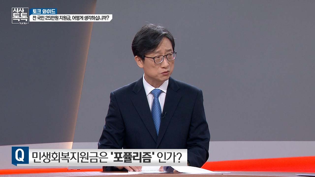 사실은 저 포퓰리즘이라는 말 자체가 좀 맞지 않다고 생각하고요. 왜냐하면 지금 이런 것이거든요. 예를 들면 우리가 이제 뭐 우리나라에 있는 분들이 100명이라고 했을 때 지금 한 40, 50명은 지금 거의 쓰러져 죽기 직전까지 간 겁니다. 그런데 그분들을 위한 뭘 하자고 하는 거거든요, 사실은. 그러니까 제가 전 국민 지원금을 동의하지는 않지만 얘기해 볼 수 있다고 말씀드린 이유가 뭐냐 하면 이거라도 얘기를 해야지 그분들을 위한 정책을 할 수 있다는 생각이 드는 거예요. 왜냐하면 현재 정부의 스탠스가 그러니까. 아무것도 하지 않고 있는 거니까 그래서 말씀을 드리는 거고. 글쎄요. 포퓰리즘은 조금 이제 선거도 지난 상황에서 조금 맞지 않는 논법이 아닌가 이런 생각이 좀 듭니다.
