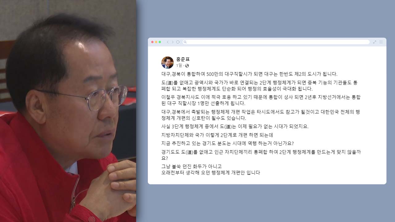 홍준표 대구시장은 SNS 계정에 대구·경북 통합의 필요성을 역설하는 글을 올렸습니다.