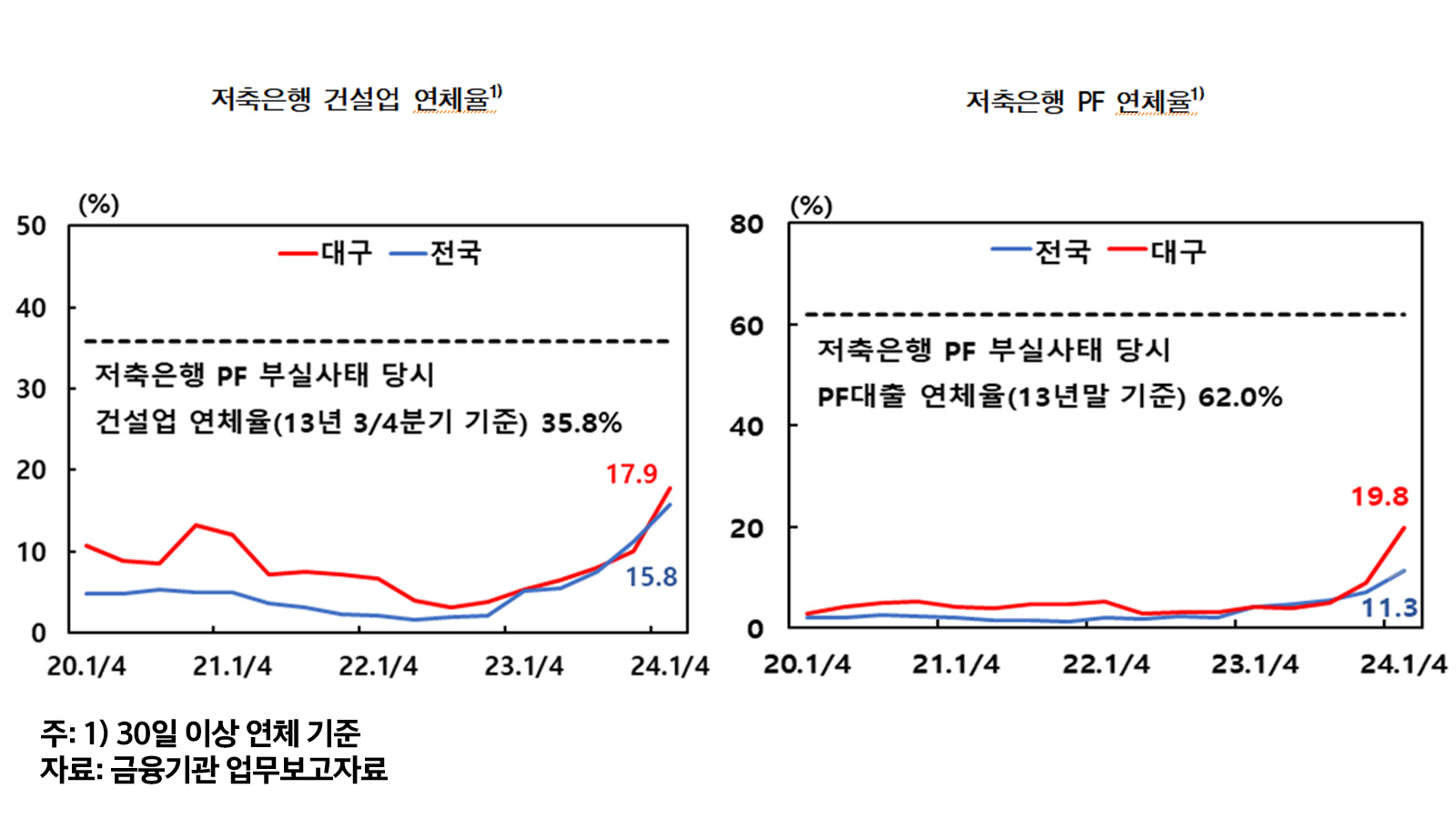 임연수 한국은행 대구경북본부 과장은 "PF 사업장의 구조조정, 부동산 경기 회복 지연 등으로 인해서 건설사들이 현금흐름이 악화하고 건설사들에 대출해 준 금융기관들의 자산 건전성이 나빠지면서 취약한 금융기관들을 중심으로 현재화될 수 있고 그게(충격이) 확산할 가능성에 유의해서 좀 더 지켜봐야 하겠다."라며 우려를 나타냈습니다.