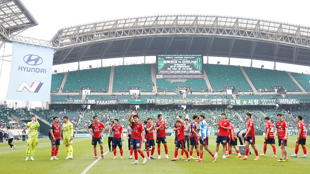 9경기째 무패를 이어갔지만, 무승부로 전주 원정을 마치며 3위로 내려앉은 김천상무가 10경기 무패와 선두권 도약을 노립니다.
