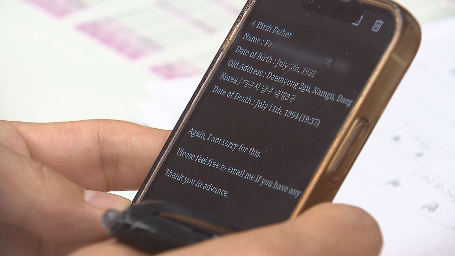 하지만 친부는 1997년 사망했다는 내용도 함께 적혀 있었습니다.