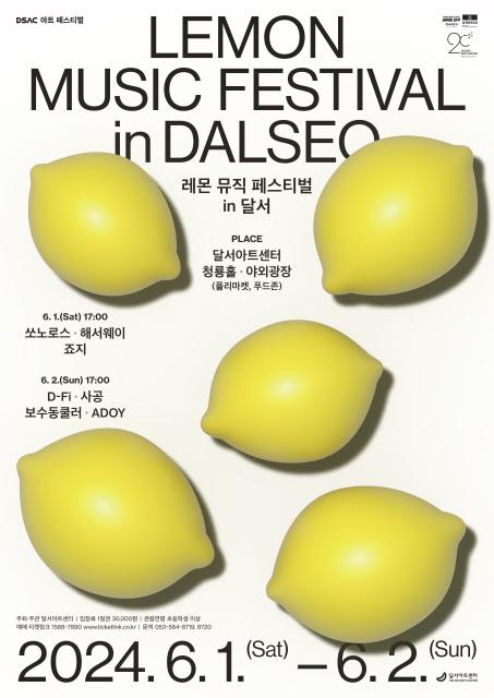 국내 인디 뮤지션의 음악을 즐길 수 있는 대구 달서아트센터의 '레몬 뮤직 페스티벌 in 달서'가 6월 1일과 2일 이틀간 열립니다.