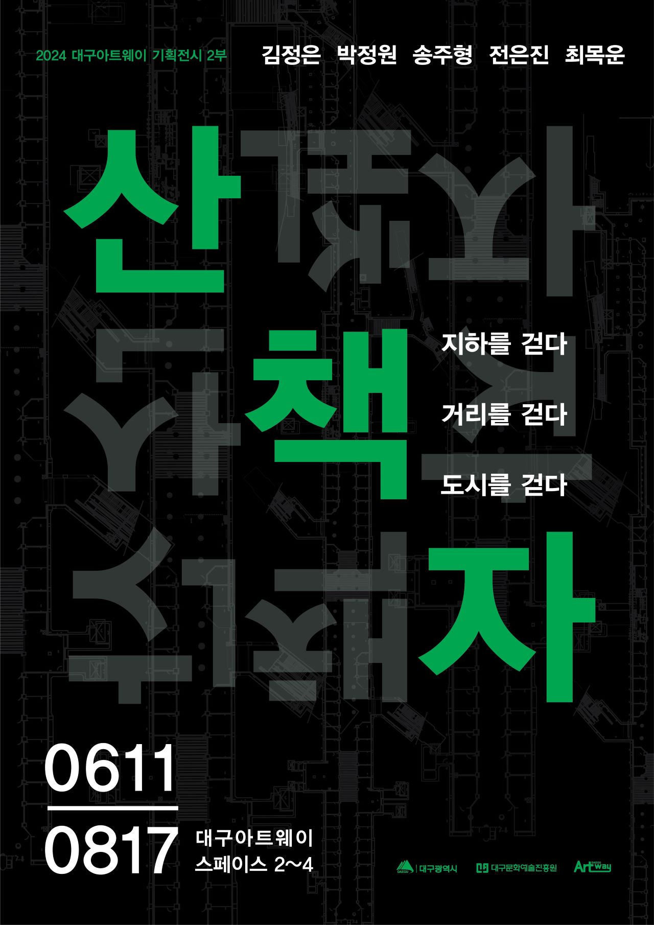 대구아트웨이가 2024 기획 전시 2부 ‘산책자’를 6월 11일부터 8월 17일까지 대구아트웨이 스페이스 2~4에서 엽니다.