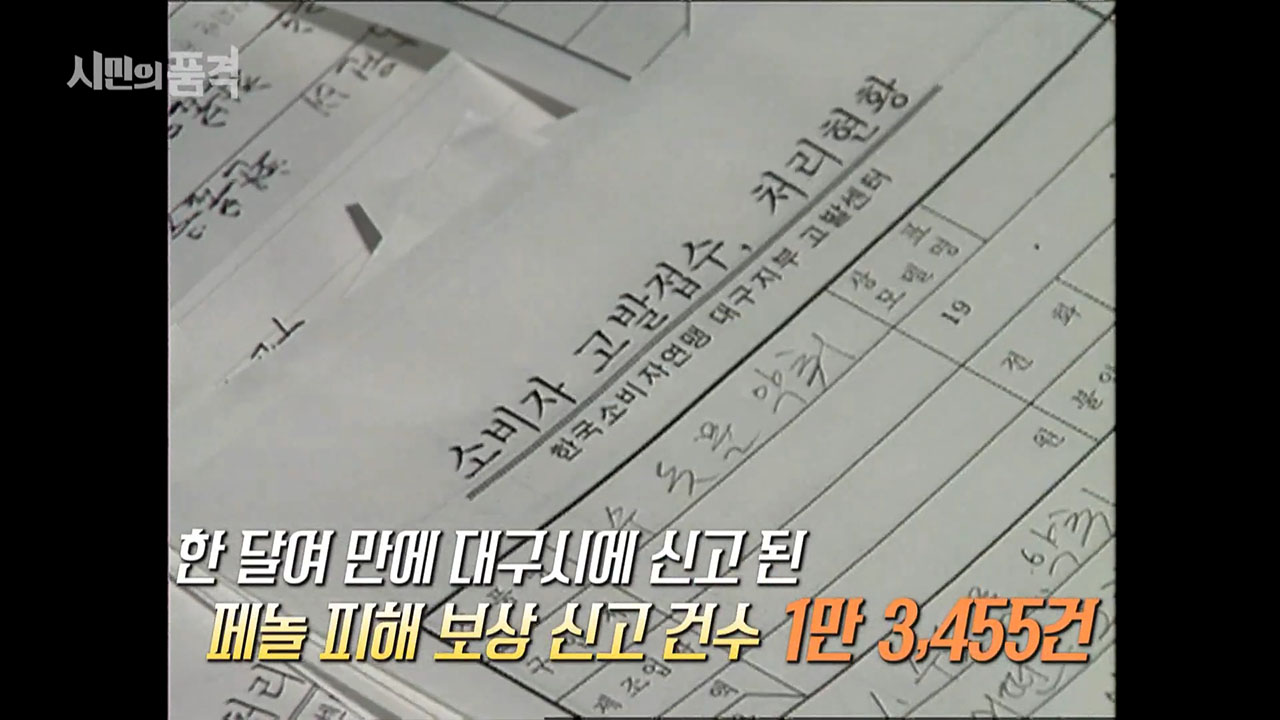 수돗물은 가정에만 들어가는 것이 아니라 음식점처럼 장사하는 곳에도 들어갔습니다. 당시 수족관 물고기가 떼죽음을 당한 일, 아파서 한약을 달여 먹었는데 복통과 설사를 일으킨 일, 수돗물로 김치와 장을 담갔는데 악취가 심해 다 버린 일, 콩나물에서 악취가 나서 다 버린 일 등 당시 대구시에 신고된 페놀 피해 보상 신고 건수는 4월 말까지 1만 3,455건, 금액으로는 무려 160억 원이 넘었다고 합니다.
