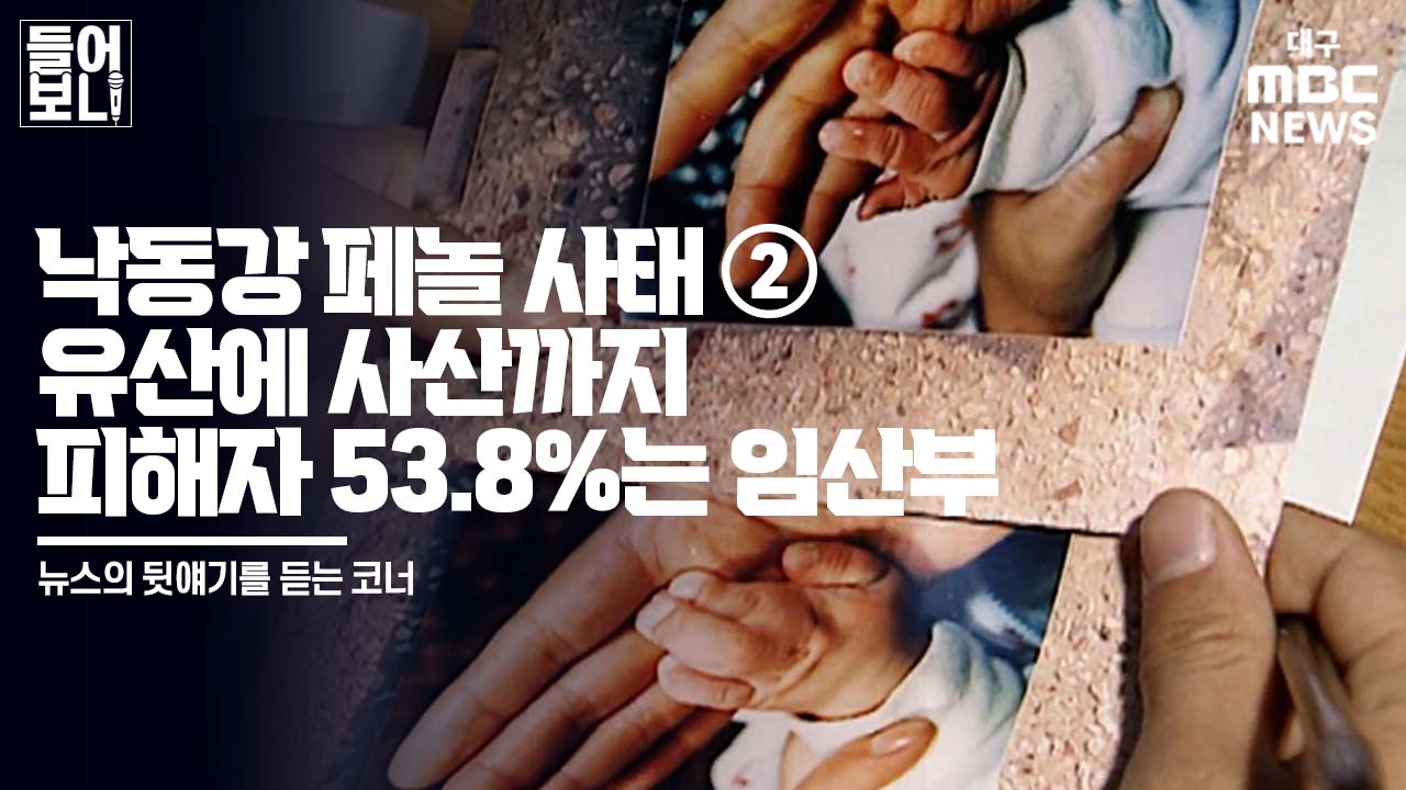 당시에 대구지역 시민단체가 4월 30일까지 접수한 피해 신고도 있었는데요, 모두 1,617건이었는데 임산부 피해가 663건이었고, 그중에 유산이 225건이었습니다. 전체 피해 건수의 53.8%에 달하는 수치입니다. 대부분은 복통, 설사, 구토, 유산, 목이 타는 듯한 통증, 피부 가려움 등이었고 정상이던 아이가 산달에 사산되거나 기형아를 출산하기도 했다고 합니다.