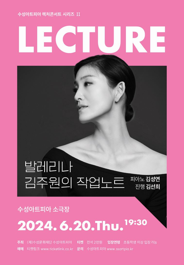 대구 수성아트피아는 6월 20일 저녁 7시 30분 수성아트피아 소극장에서 '렉처콘서트 시리즈'의 두 번째 공연으로 발레리나 김주원의 작업 노트를 공연합니다.