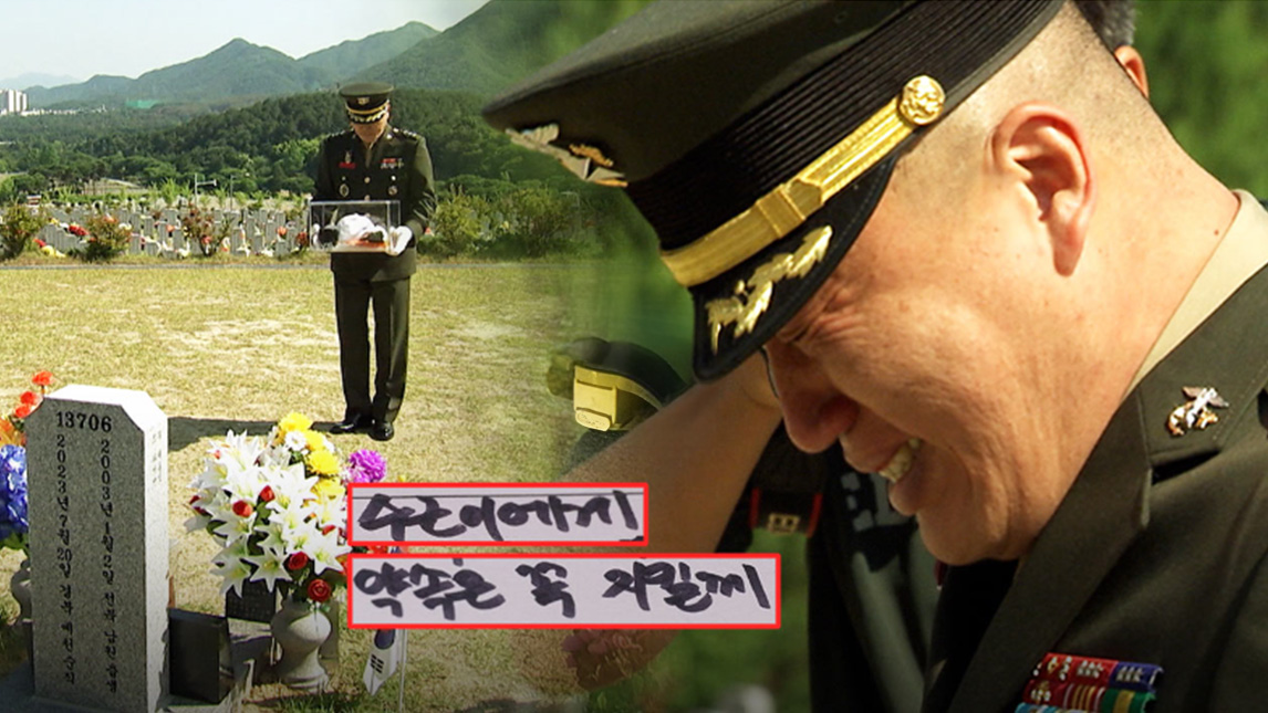 이 중령은 사고가 난 내성천 보문교 위에서 국화꽃을 헌화하고, 강변까지 걸어가 술을 따르며 참배한 뒤 채 상병을 향해 "또 올게, 수근아"라는 말을 남겼습니다.