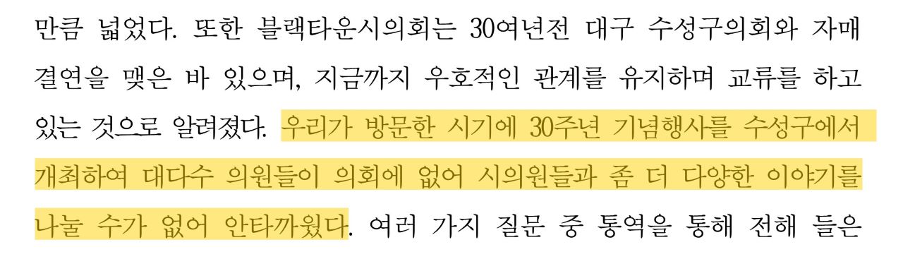 대구 북구의회, 의원님의 기행문 보고서