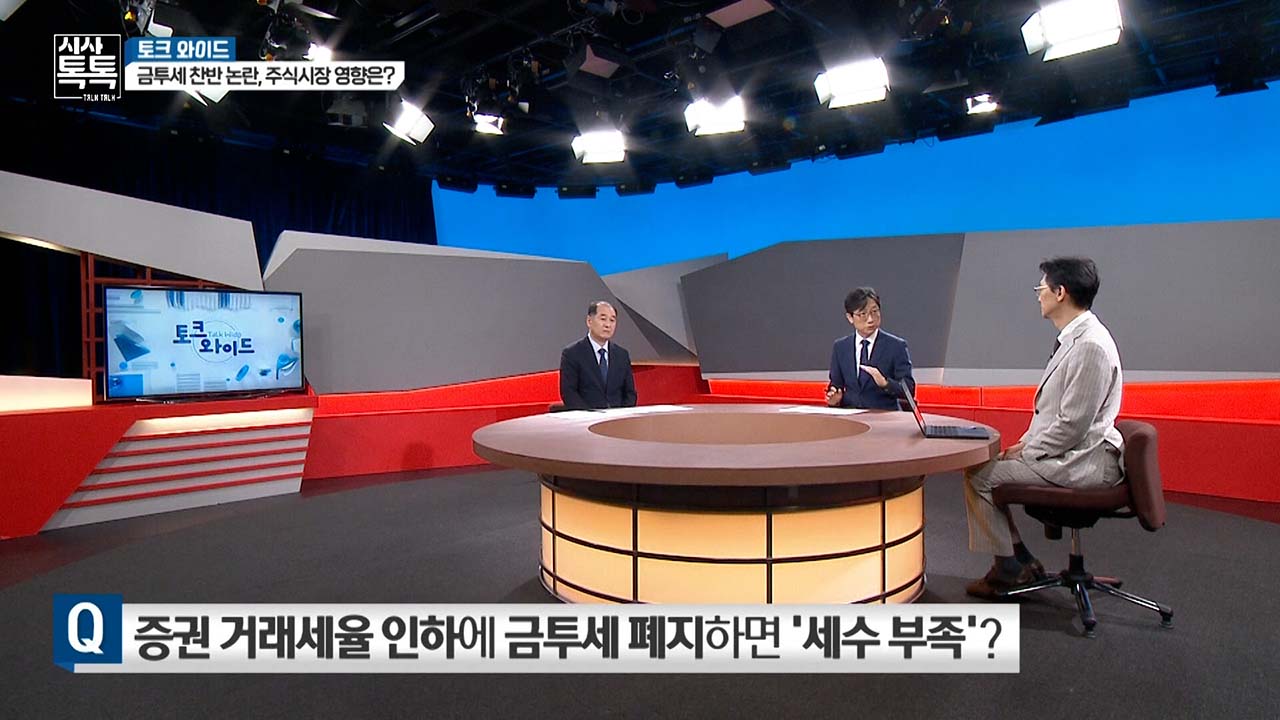 이번 주 시사톡톡에서는 금투세 찬반 논란의 핵심 쟁점과 주식 시장에 미치는 영향을 중심으로 토론하는 시간을 마련했습니다. 먼저 오늘 모신 두 분 패널 소개하겠습니다. 참여연대 조세재정개혁센터 실행 위원 맡고 계신 이상민 나라살림연구소 수석연구위원 모셨습니다. 어서 오십시오.