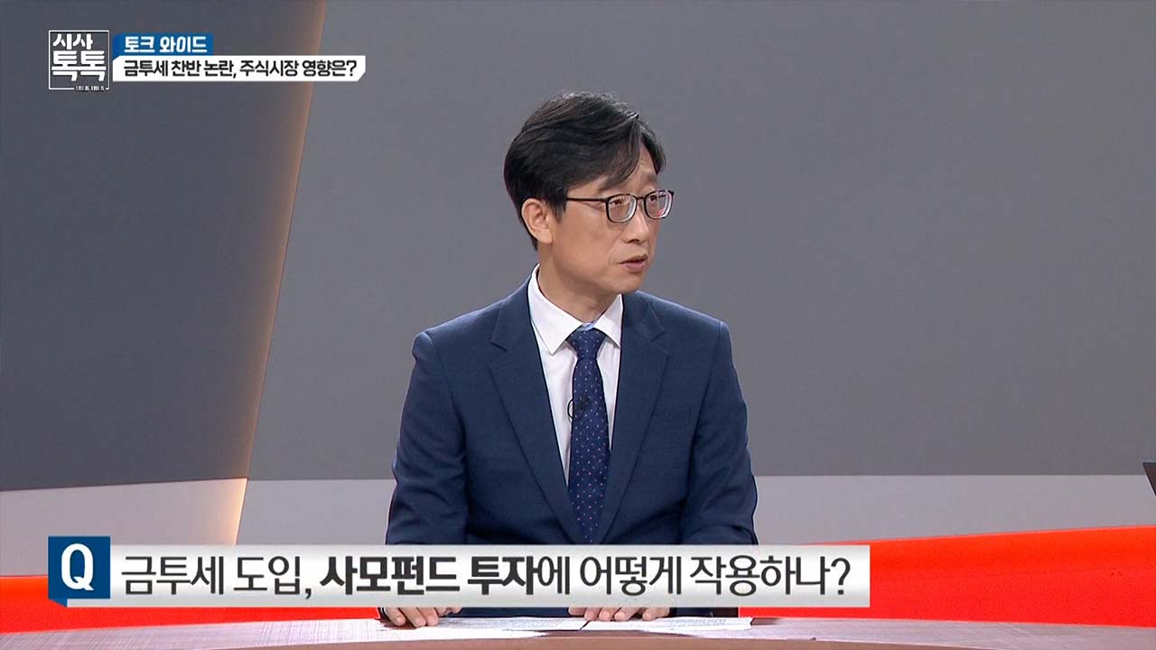 사모펀드협회 얘기를 들어봐야 하는데요. 만약에 사모펀드에 혜택을 준다고 하면 사모펀드협회는 금투세를 오히려 반기겠죠. 그런데 지금 금투세를 제일 반대하는 곳이 사모펀드협회입니다. 사모펀드협회 입장은 굉장히 억울해해요. 왜 우리 같은 경우는 이 나의 펀드가 주식에 투자해서 양도차익에 과세를 해도 그래도 이것을 어떻게 배당소득으로 해서 최고 세율에 적용되게 하냐, 그래서 사모펀드협회는 너무 고세율 때문에 억울하다고 말씀하는데.