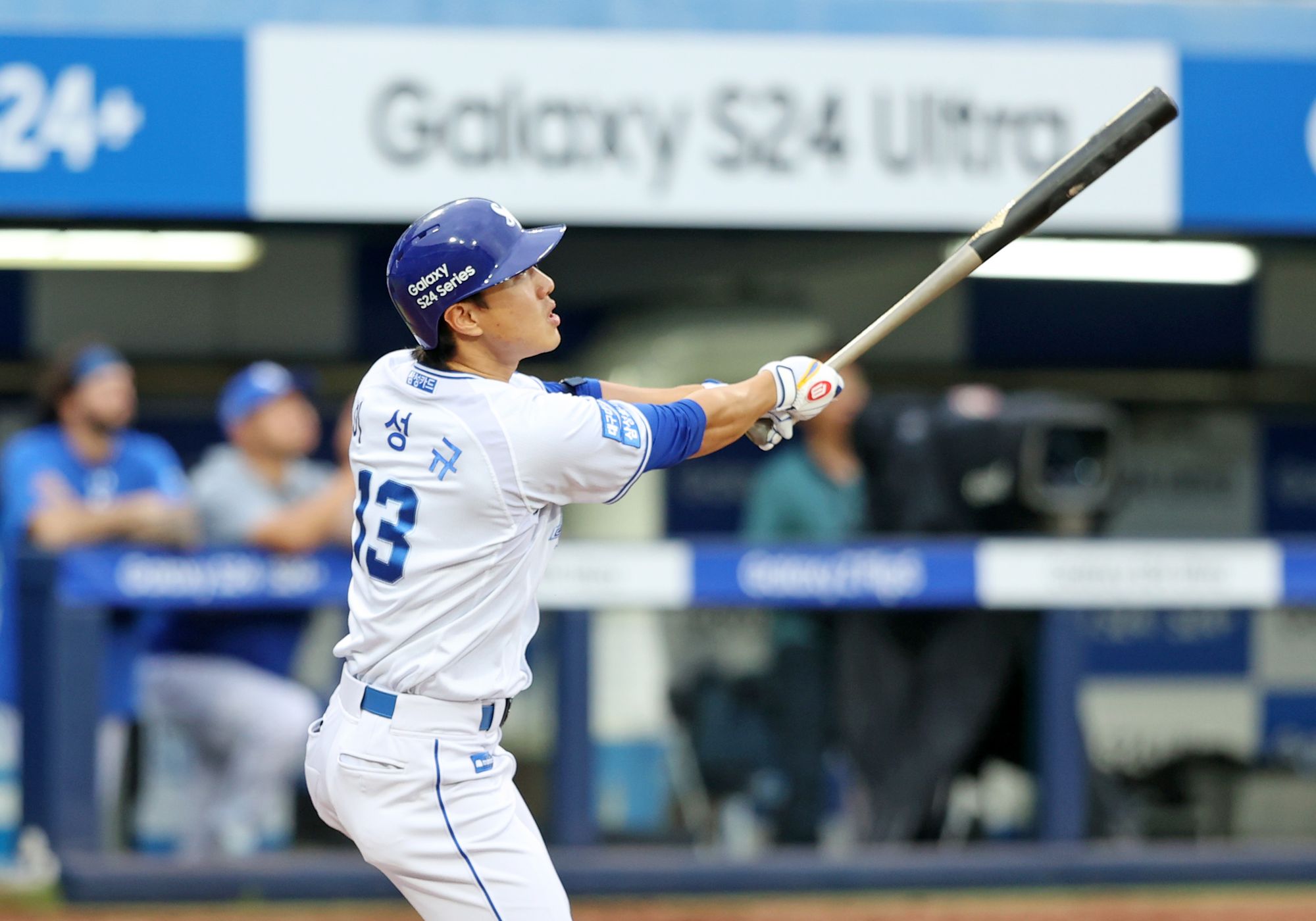 1회말 3점 홈런으로 첫 타석을 시작한 이성규는 4회말 선두타자로 나서 3루타로 출루한 뒤 홈을 밟으며 팀의 7번째 득점을 올립니다.