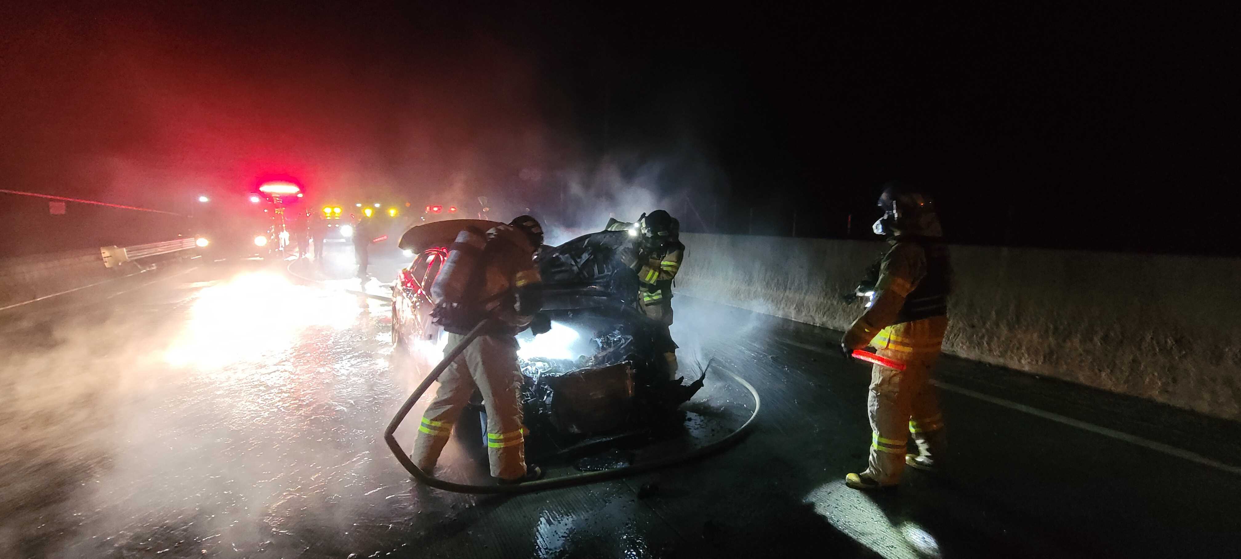 이 사고로 승용차에 불이 나 차량을 태운 뒤 30여 분 만에 꺼졌고, 20대 승용차 운전자가 다쳐 병원으로 옮겨졌습니다.