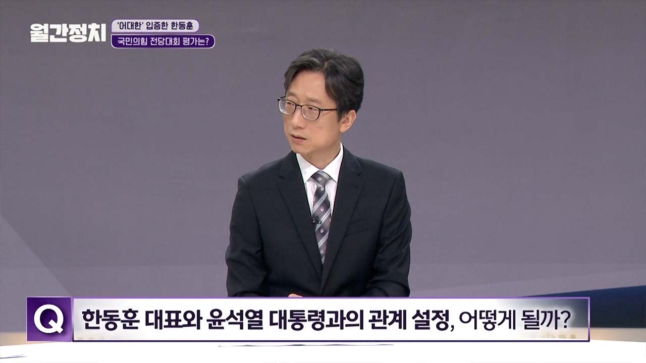 그런데 한동훈 후보가 미래를 얘기하면서 현재 윤심과는 다른 얘기를 하면서 당선이 된 거란 말이에요. 그래서 지금 모양이 꼭 국민의힘이 왕당파와 개혁파의 갈등처럼 이렇게 모양이 갖춰지거든요. 그래서 이 부분이, 그러니까 기존에 다른 후보들 원희룡, 나경원 이런 후보들하고 생겼던 문제는 큰 문제가 아닐 거라고 보는데, 결국 왕당파와 개혁파의 역관계가 어떻게 풀려나가느냐, 이거는 상당히 큰 관심과 과제일 거라고 봐요.