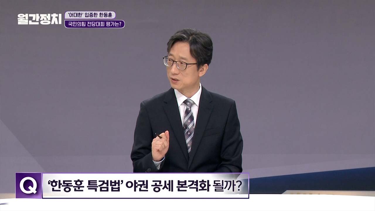 그렇지만 이제 상대에 대한 약점을 확실하게 공격할 수 있는 능력이랄까 이런 것들은 야당이 조금 살짝 두려운 측면도 있을 겁니다. 만약에 한동훈 자신을 완전히 불태우면서까지, 차기 권력이 아니더라도, 야당의 강력한 지금 집단적인 공격에, 탄핵을 비롯한 그런 부분에 한동훈 자신이 완전 분골쇄신의 입장으로 나는 죽어도 좋으니까 하겠다. 이런 자세로 나간다면, 그건 지금 민주당으로 봐서는 만만치 않은 상대가 다시 등장하는 거니까 그 부분을 아마 앞으로 저는 좀 흥미롭게 보고 싶습니다. 어떻게 할지.