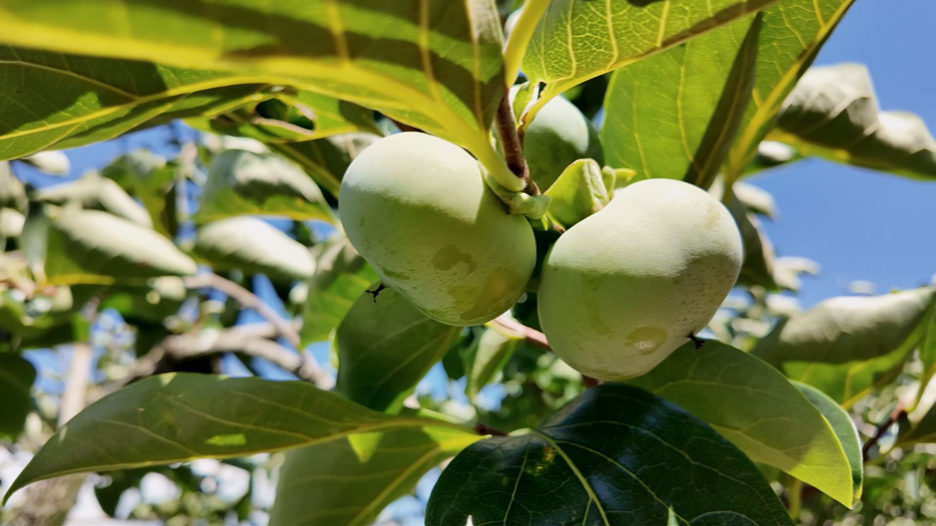 그런데, 농장 대표의 말을 듣고 자세히 살펴보니 감이 달려 있어야 할 곳에 감은 없고, 감꼭지나 꽃잎만 붙어 있는 가지가 곳곳에 있었습니다.