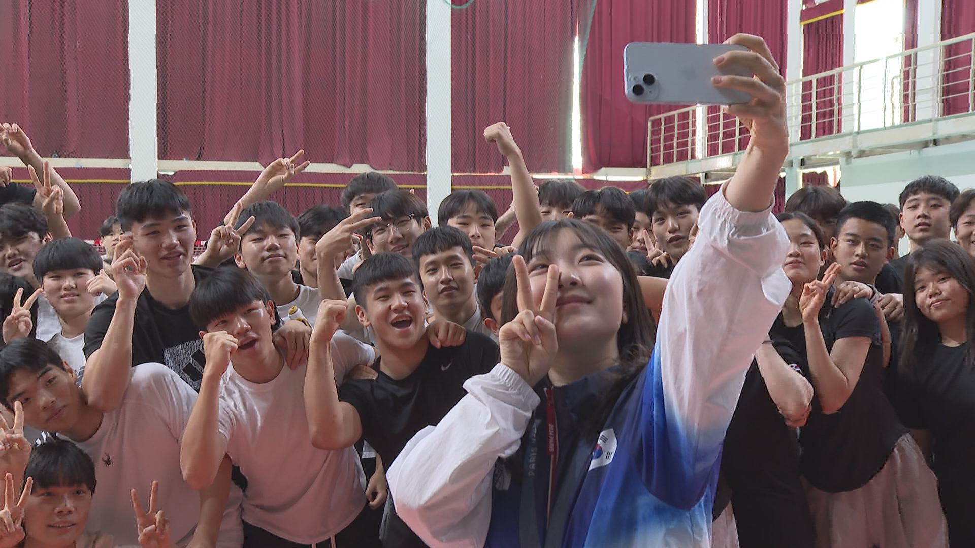 반효진 파리올림픽 여자 10m 공기소총 금메달리스트 "8월 11일 학교 기숙사에 들어와서 친구들을 봤는데 밤에 다 같이 로비에 모여서 박수쳐주고 응원해 줬기 때문에 그제야 막 다 실감이 나고 응원해 준 것도 고마운데 축하까지 이렇게 완벽하게 해줘서 너무 고마울 따름입니다. 진짜 진심으로 감사드립니다. 이렇게 다 응원해 주셔서 제가 이런 결과를 얻을 수 있지 않았나 싶어서 진짜 감사하다고 꼭 말해주고 싶고··· 응원받은 만큼 저도 훈련 열심히 하겠습니다."