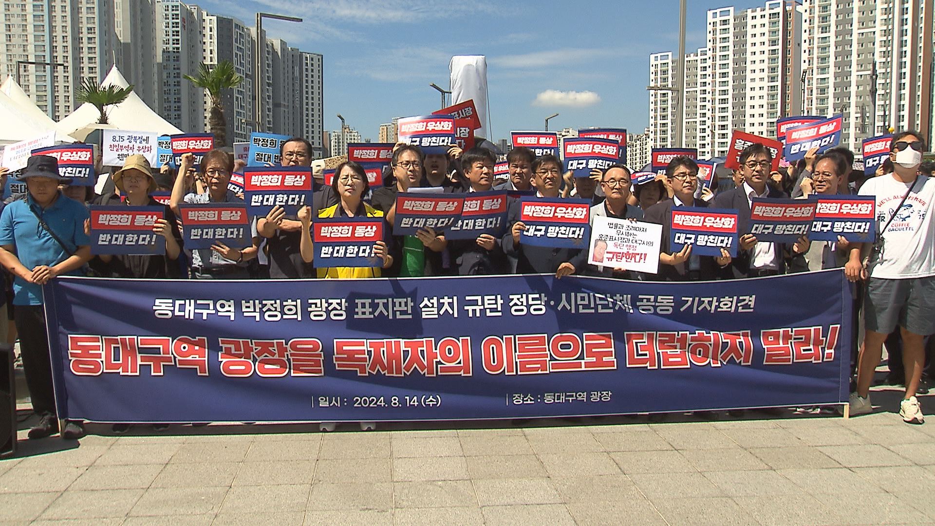 만주군 장교로 복무했던 박 전 대통령은 2009년 민족문화 연구소가 발간한 친일 인명사전에 이름을 올리기도 했는데, 하필이면 광복절을 하루 앞두고 독립군을 탄압했던 독재자의 이름을 시민 광장에 세우느냐고 규탄했습니다.