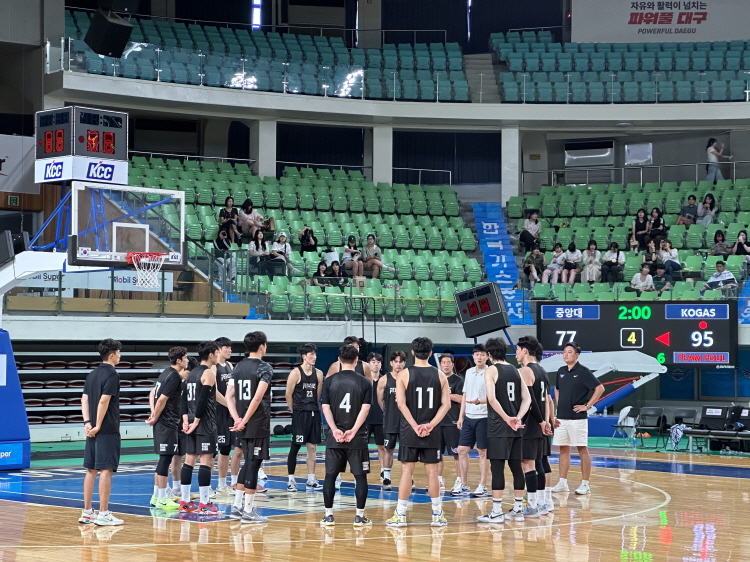 16일 오후 대구체육관에서 펼쳐진 '8월 대구 4연전' 마지막 경기에서 중앙대를 상대로 경기 내내 리드를 지킨 끝에 95-77로 승리를 거두며 8월 대구 일정의 마지막 경기를 마무리했습니다.