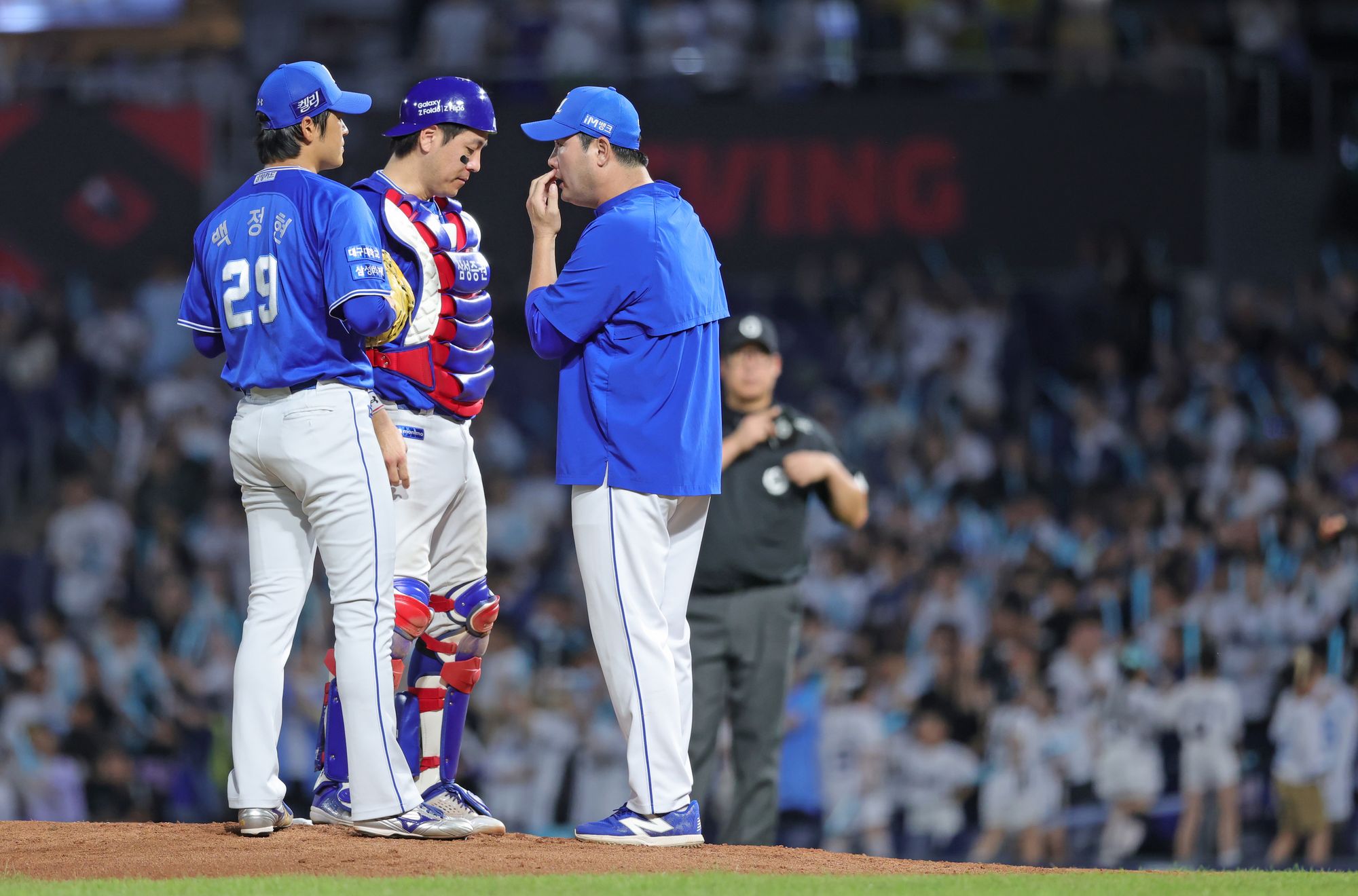 5회에도 구자욱과 강민호의 적시타로 2점을 더한 삼성은 3-0 리드로 선발 백정현의 어깨를 가볍게 만들었습니다.
