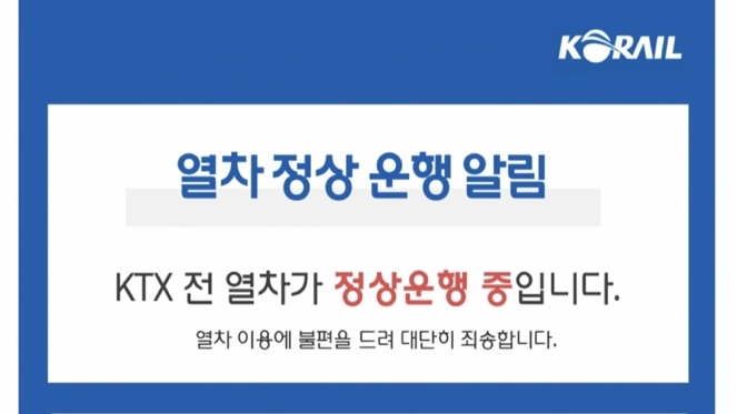 또 열차 지연과 관련해 택시비 등 추가 보상을 하겠다며 보상 내용과 신청 방법 등은 레츠코레일 홈페이지를 통해 공지할 예정이라고 밝혔습니다.