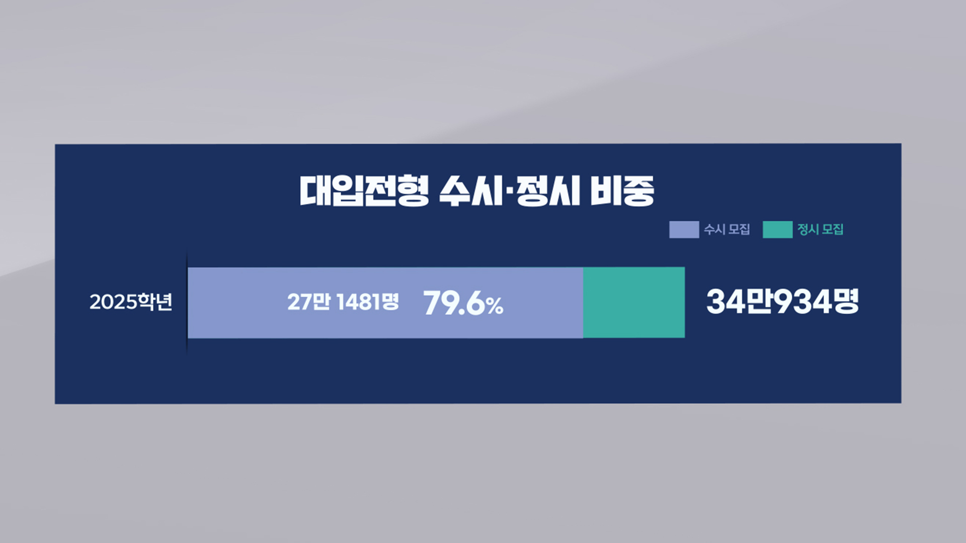 2025학년도 대입 모집 인원 34만 934명 가운데 수시 모집은 27만 천 481명으로 79.6%에 달하는데요.