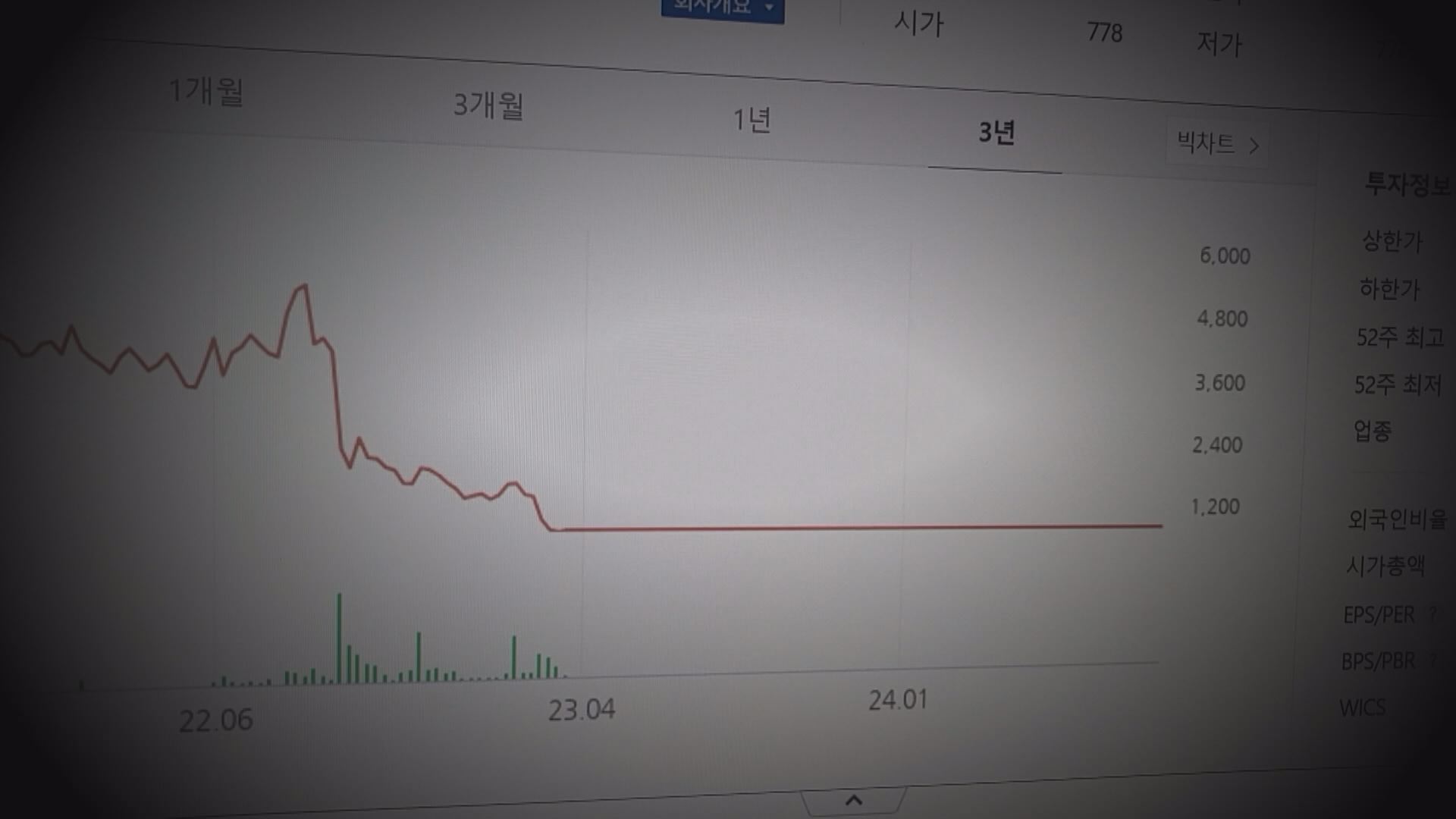 이 과정에서 한때 5천 원이 넘었던 주가가 700원대까지 떨어지더니 급기야 이듬해인 2023년 3월 주식 거래가 정지됐습니다.