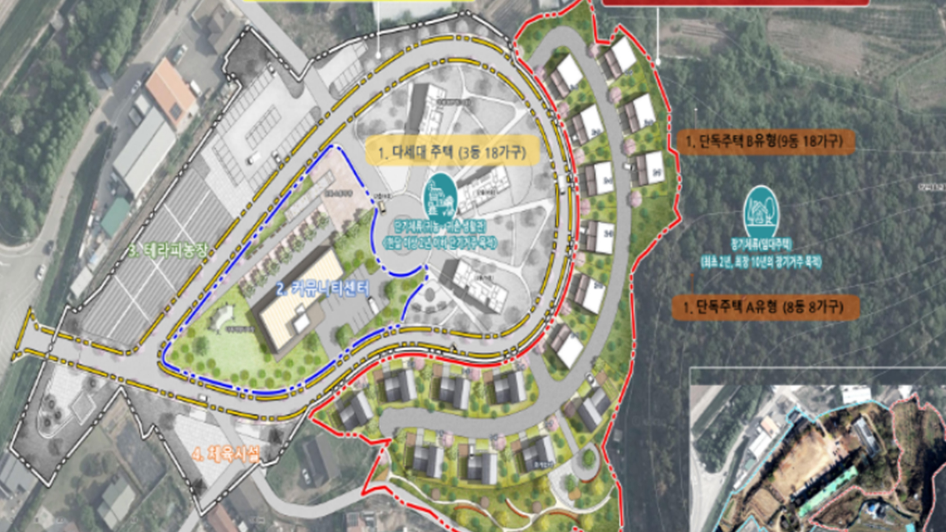 고령군의 천년 건축은 다산면 벌지리 일원에 국토교통부의 지역 수요 맞춤 사업과 연계해 2만 7,663제곱미터의 터에, 주택 25동에 70호, 커뮤니티 센터, 테라피 농장, 체육 시설, 돌봄 센터 등으로 조성되며, 기반 시설과 공동이용시설 조성은 도비로 추진됩니다.