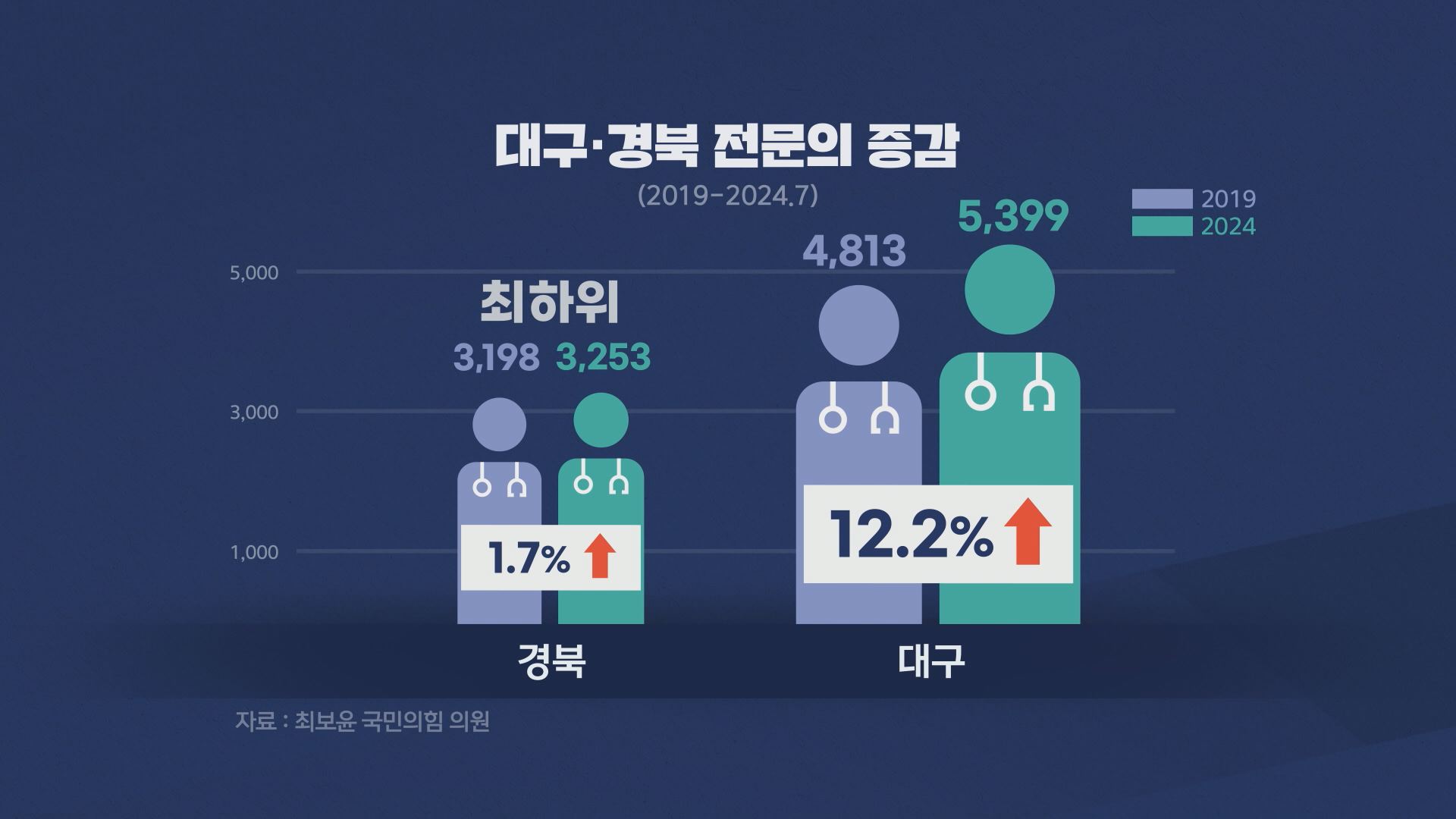 경북 지역 전문의는 2019년 3,198명에서 올해 3,253명이니까 5년 동안 55명 많아졌습니다.