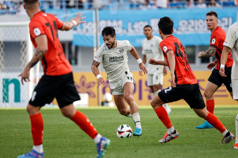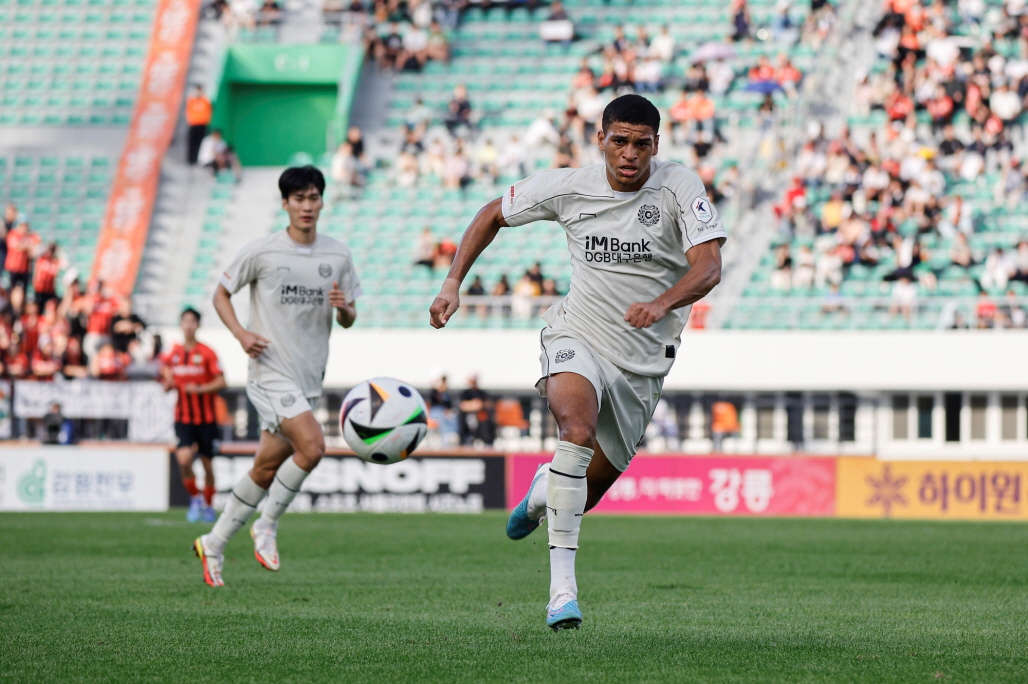 28일 오후 강릉종합운동장에서 펼쳐진 하나은행 K리그1 2024 강원FC와의 32라운드에서 대구는 후반 24분 프리킥 실점으로 끌려갔지만, 5분 뒤 터진 세징야의 발리슛으로 1-1 무승부를 기록합니다.