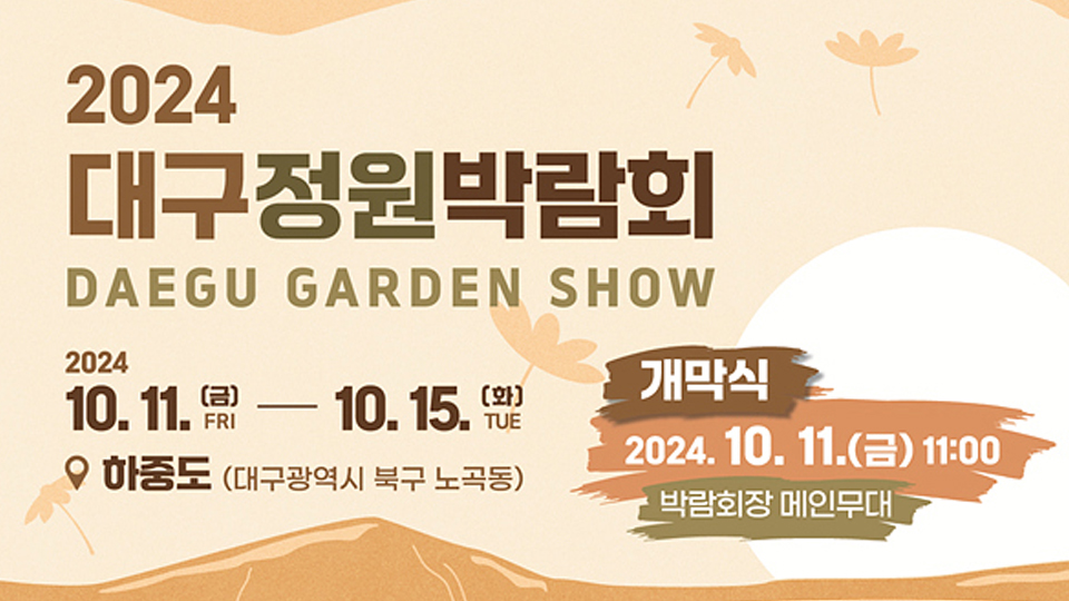 2024 대구정원박람회가 10월 11일부터 15일까지 닷새간 금호강 하중도에서 열립니다.