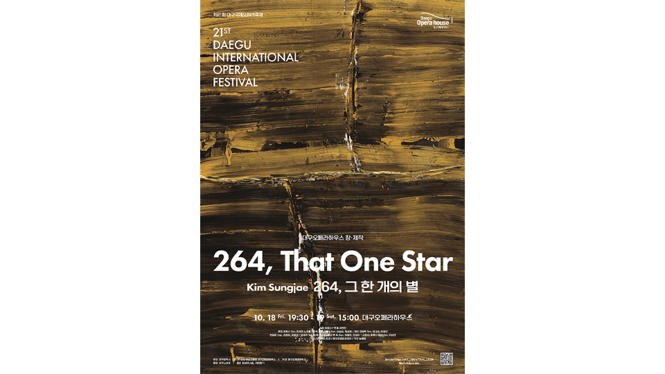 대구오페라하우스는 '제21회 대구 국제 오페라 축제'의 세 번째 메인 오페라인 '264, 그 한 개의 별'의 특별 할인 '1만 원의 행복'을 진행합니다.