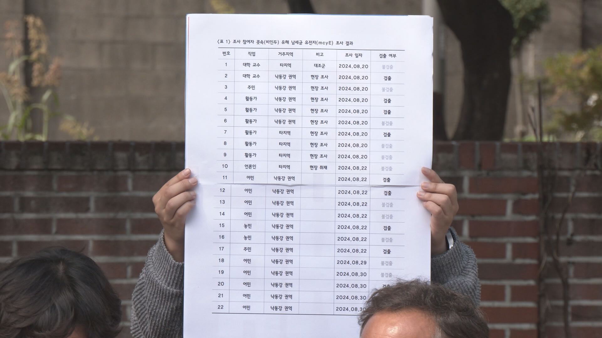 김동은 계명대학교 동산의료원 교수는 "낙동강 권역 거주자 17분 중의 10명에서 유전자가 검출됐고요. 직업별로 보면 어민 아홉 분 중의 다섯 분에게서 남세균이 확인되었고요. 농민 네 분 중에는 두 분이 남세균 유전자가 나왔습니다."라고 말했습니다.