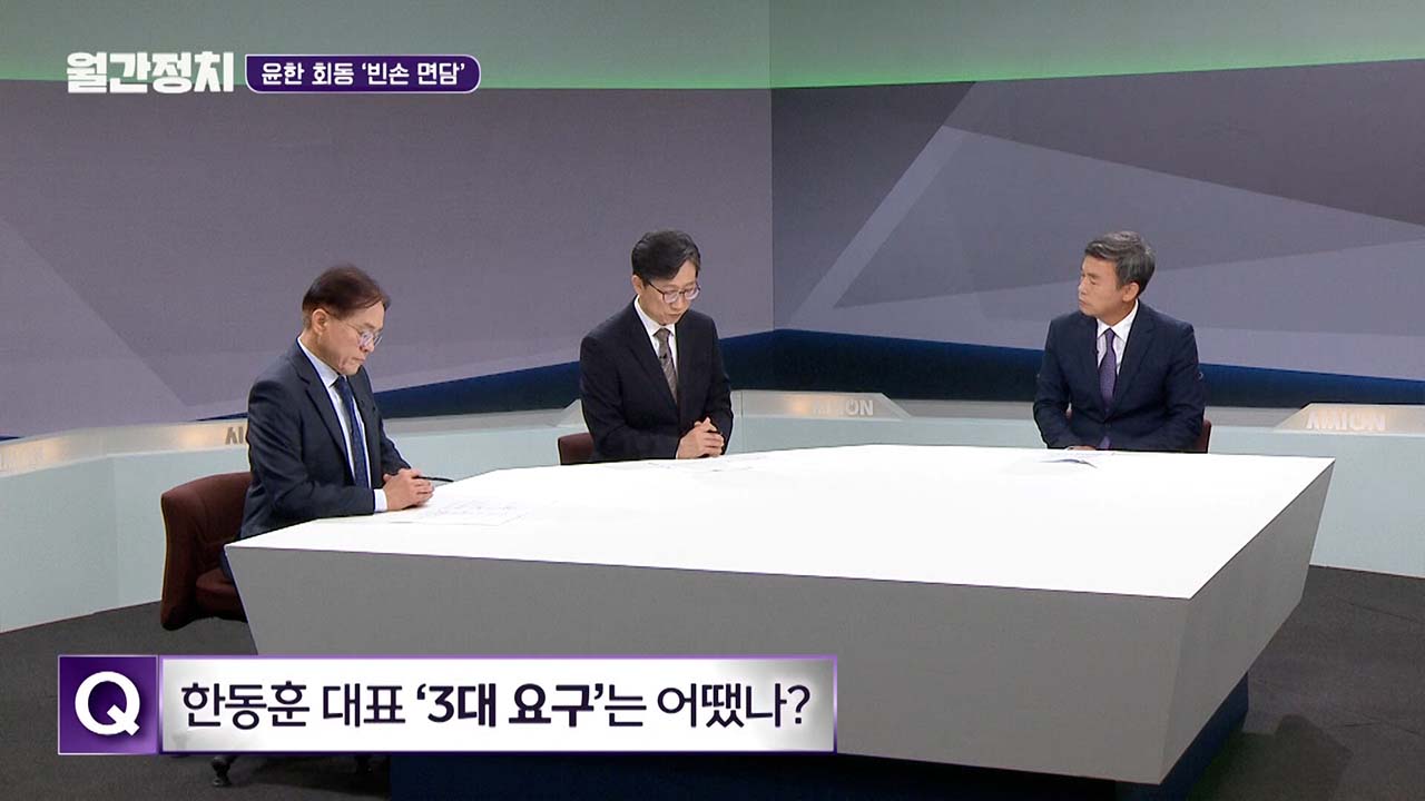 윤석열 대통령과 한동훈 대표의 만남이 빈손 회동으로 끝났습니다. 한 대표가 김 여사 대외 활동 자제와 인적 쇄신 등 3대 요구를 이야기했으나 윤 대통령이 사실상 거절 의사를 밝혔습니다. 이와 함께 정치권을 흔들고 있는 김건희 여사와 정치 브로커 명태균 씨에 대한 문제도 합의를 이루지 못했습니다. 이번 월간 정치에서는 윤-한 회동 결과와 깊어지는 당정 갈등을 살펴보겠습니다.