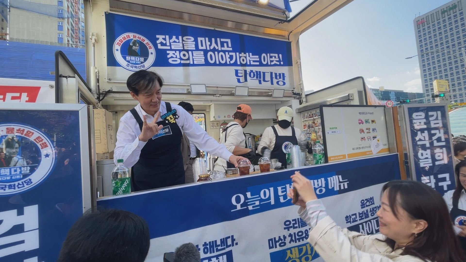 조국혁신당이 정권 퇴진을 위한 장외투쟁의 하나인 '탄핵다방 1호점'을 11월 2일 대구에서 열었습니다.