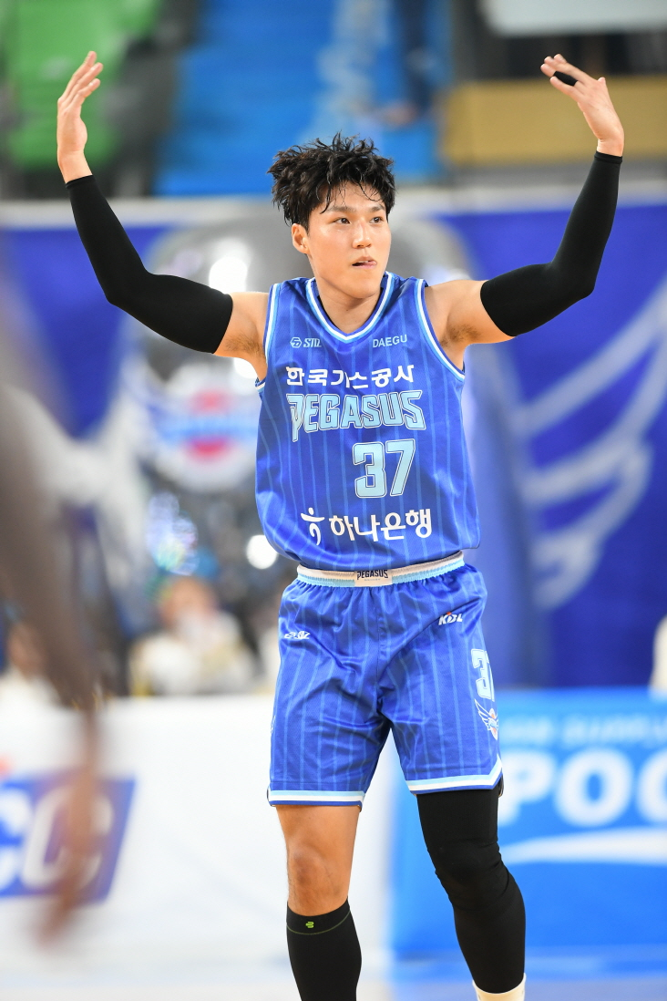 5연승과 선두 등극을 이뤄낸 대구한국가스공사의 이번 시즌 홈 2번째 승리에는 4쿼터 결정적인 3점 슛 3개를 성공시킨 곽정훈의 활약이 있었습니다.