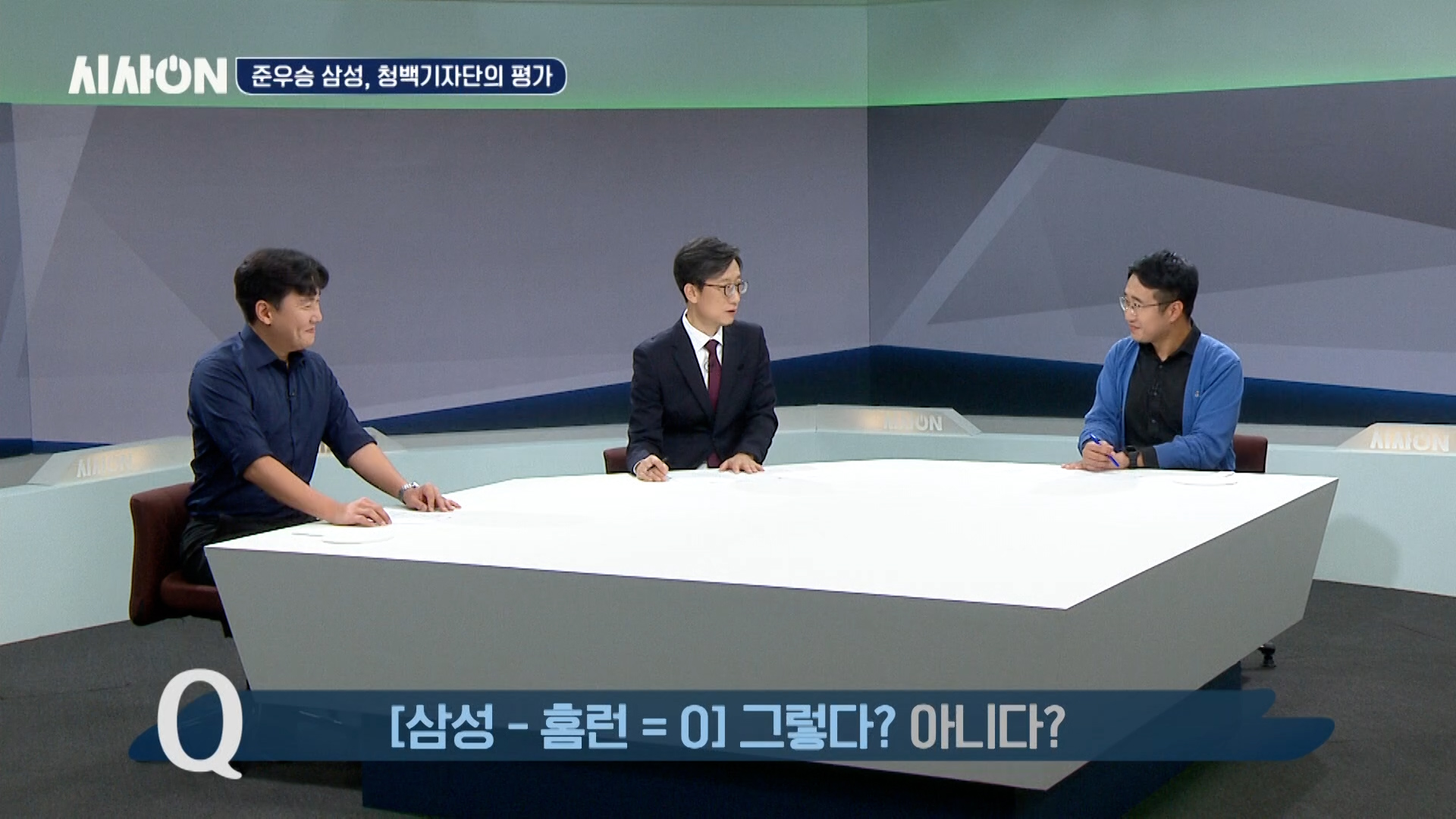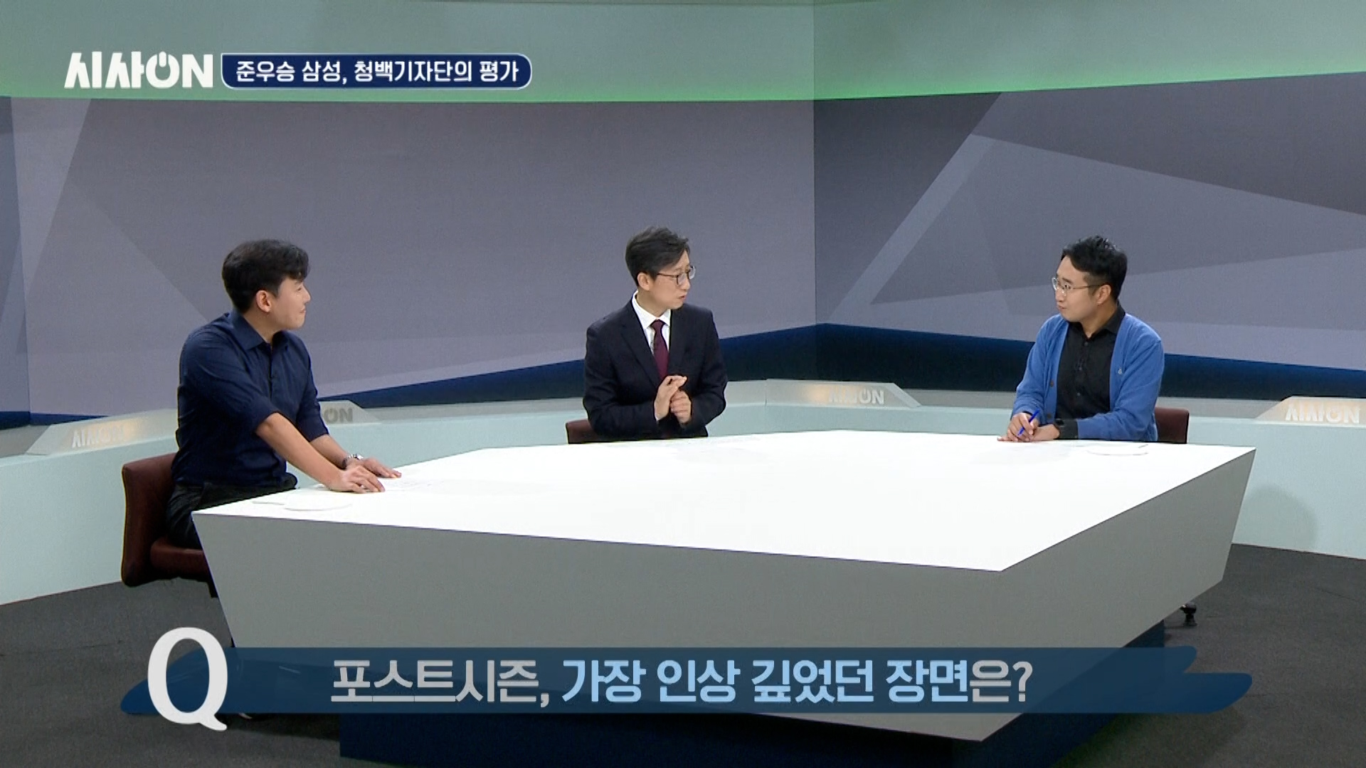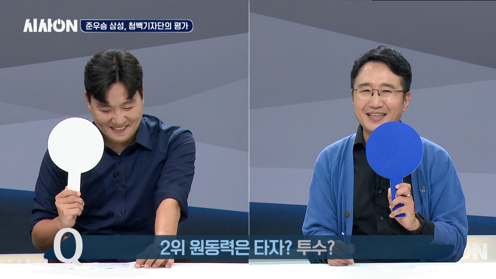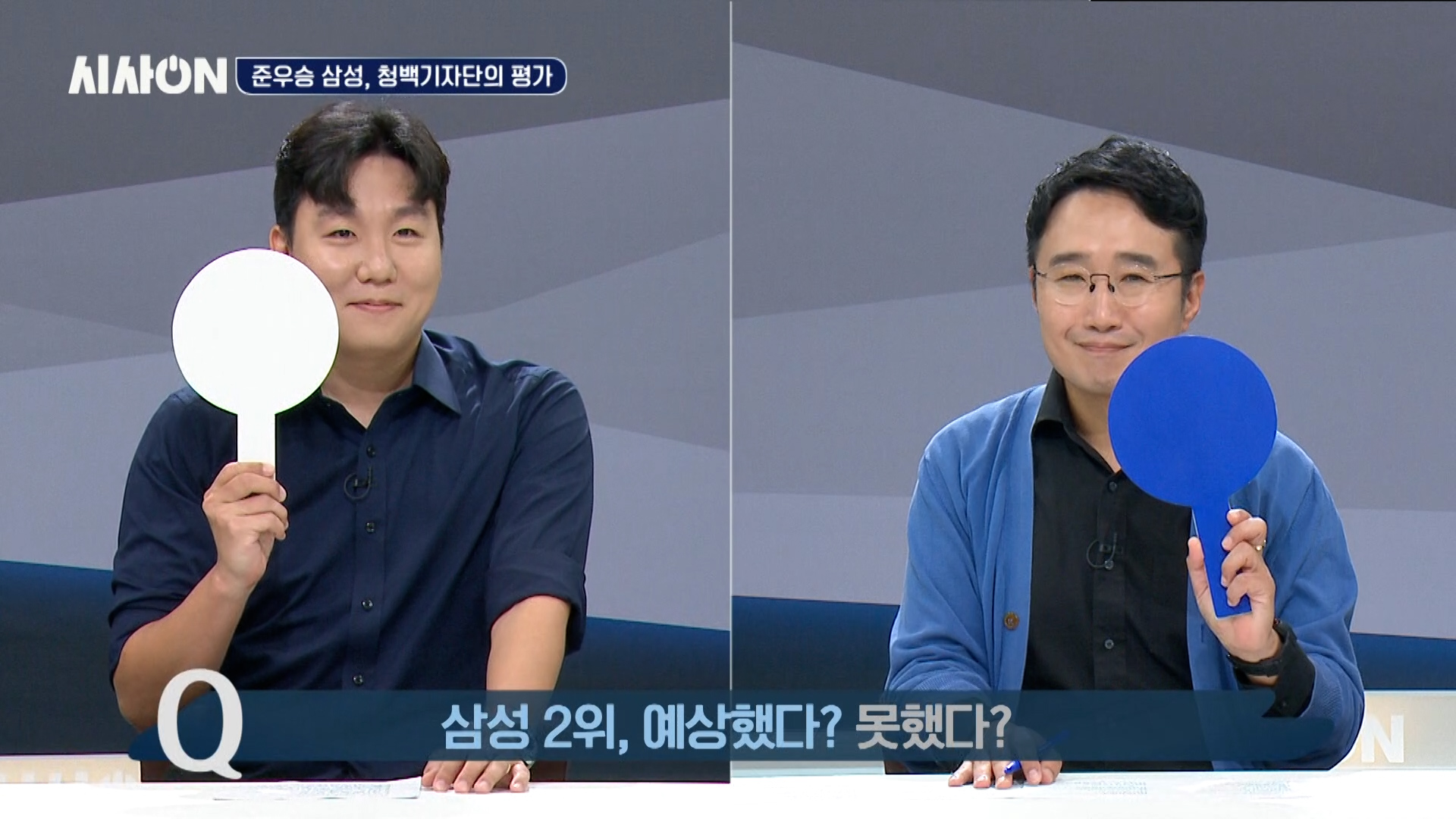 라이온즈 파크를 일각에서는 ‘홈런 공장’이라고 부르는데, 삼성이 이번 포스트시즌에서 홈런을 많이 친 것이 인상적이었습니다. 두 분도 언급하셨지만, 삼성은 홈런을 빼면 아무것도 아니라고도 할 수 있겠죠. 삼성이 홈런을 통해 이겼다고 생각하시면 청색을, 그렇지 않다면 백색을 선택해 주세요. 두 분은 어느 쪽입니까? 홈런 공장이 맞다고 보시나요? 두 분께 그 이유를 여쭤보고 싶은데, 윤 기자님 먼저 말씀해 주세요.
