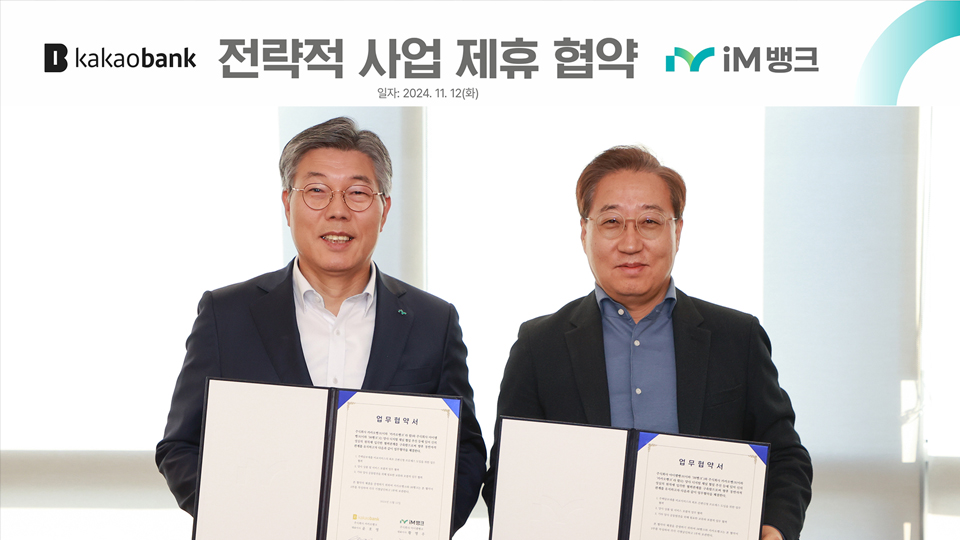 iM뱅크는 카카오뱅크와 금융 소비자의 편의성을 높이기 위한 '전략적 사업 제휴' 협약을 체결했다고 밝혔습니다.