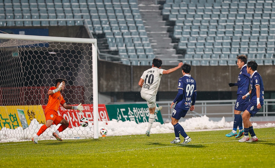 2선 침투에 대한 타이트한 수비가 이뤄지지 않았다는 점을 아쉽다고 언급한 박창현 감독은 공간을 허용한 것이 실점의 원인이라고 밝히며 그 부분만 보완한다면 대팍에서는 좋은 경기가 펼쳐질 것이라고 내다봤습니다.