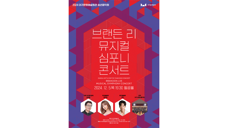 송년 음악회 '브랜든 리 뮤지컬 심포니 콘서트'는 뮤지컬과 클래식을 섞은 것으로 뮤지컬 음악감독이자 작곡가 브랜든 리의 대표 작품을 연주합니다.