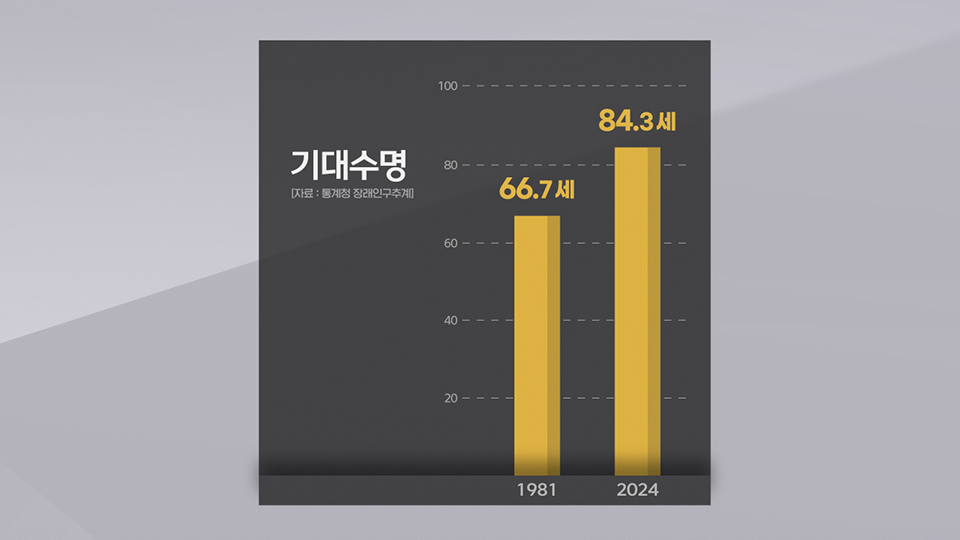 0세 출생아가 생존할 것으로 기대되는 평균 생존 연수를 뜻하는 기대수명은 1981년 66.7세에서 2024년 84.3세로 17.6세 늘었습니다.