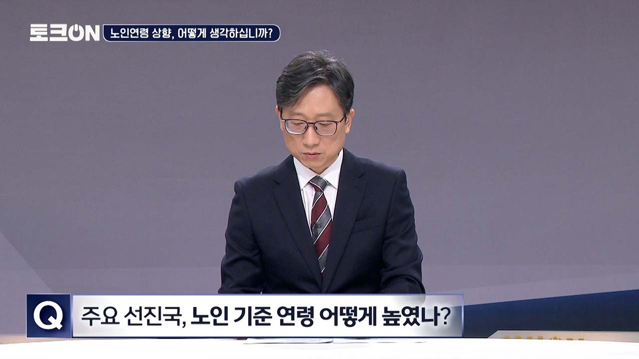 우리나라 고령화 속도는 세계에서 유례없이 빠른 모습을 보입니다. 고령화를 먼저 겪은 유럽 국가들은 사회적 합의를 모아 노인 연령을 65세 이상으로 이미 높이기도 했습니다. 우리나라 역시 65세에 머물러 있는 노인 연령 기준을 높이고, 정년 기준인 60세도 은퇴 시점에 맞춰 조정해야 한다는 목소리가 높아지고 있습니다. 오늘 ‘토크 ON’은 해외 선진국의 노인 연령 기준 상향 사례를 살펴보고, 우리나라는 어떤 결정이 필요한지 논의합니다.