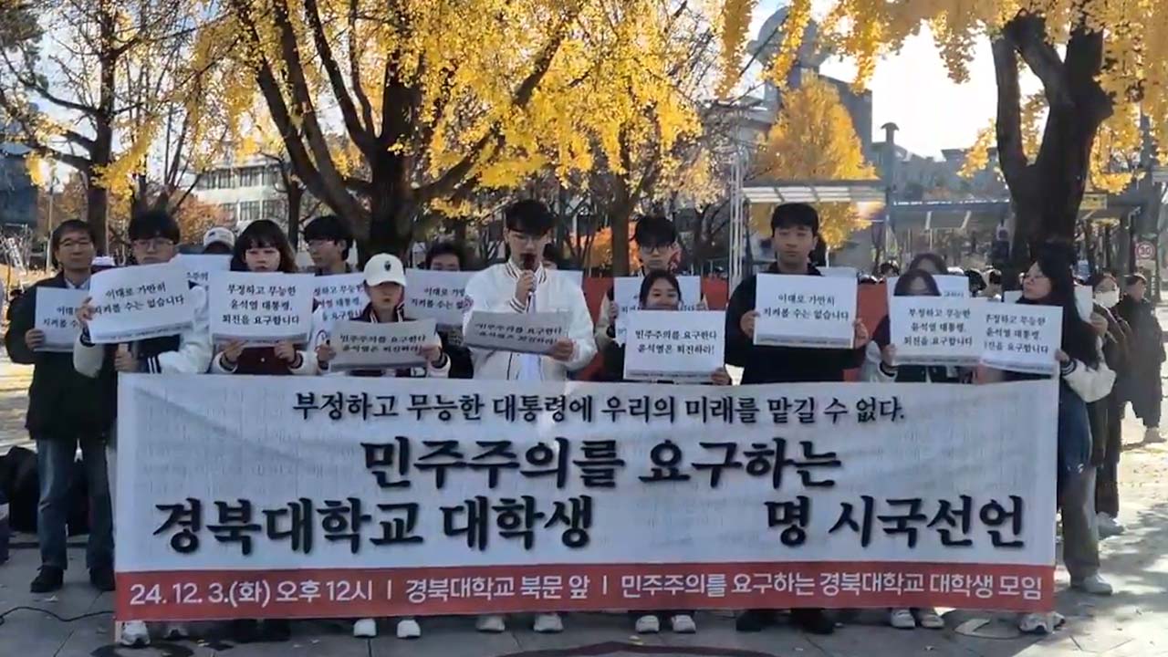 교수들에 이어 경북대학교 학생들도 윤석열 대통령 퇴진을 촉구하는 시국선언을 발표했습니다.