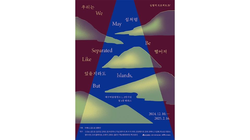 대구예술발전소의 2024년 네 번째 실험적 프로젝트 '우리는 섬처럼 떨어져 있을지라도'가 대구예술발전소에서 2025년 2월 16일까지 계속합니다.