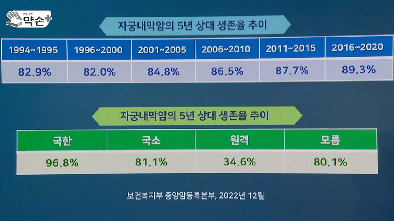 정기 검사를 계속해서 이어가야 할 것이고요. 보통 암 생존율을 5년이라고 얘기하는데 자궁내막암의 경우는 어떨까요?